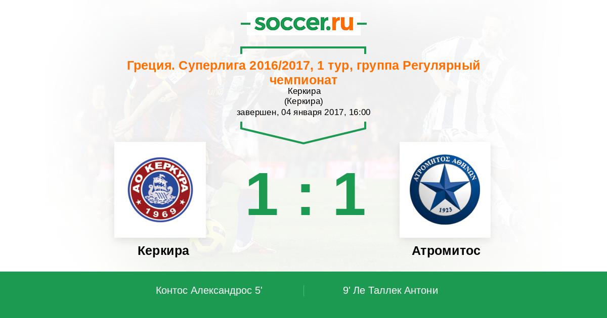 5' (1:0) Контос Александрос (19) (Цорбас Панайотис (10))