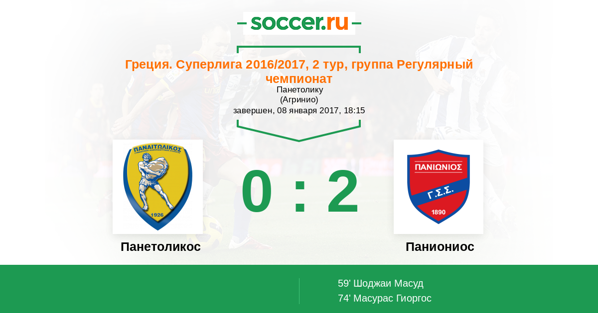 Протокол матча Панетоликос против Паниониос