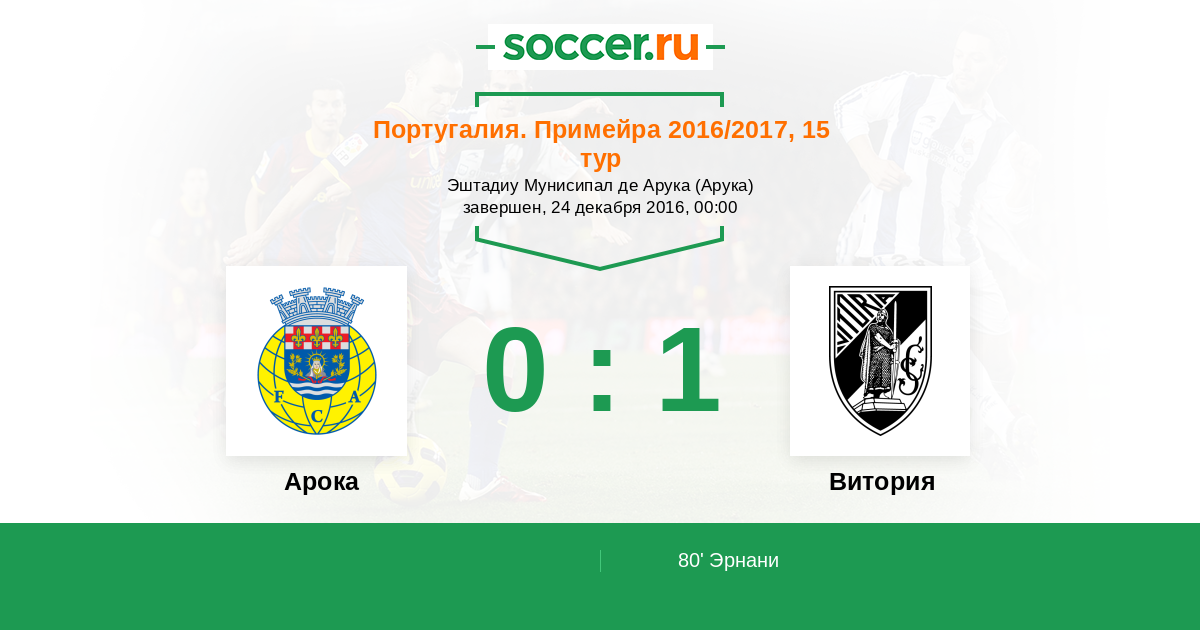 Протокол матча Арока против Витория