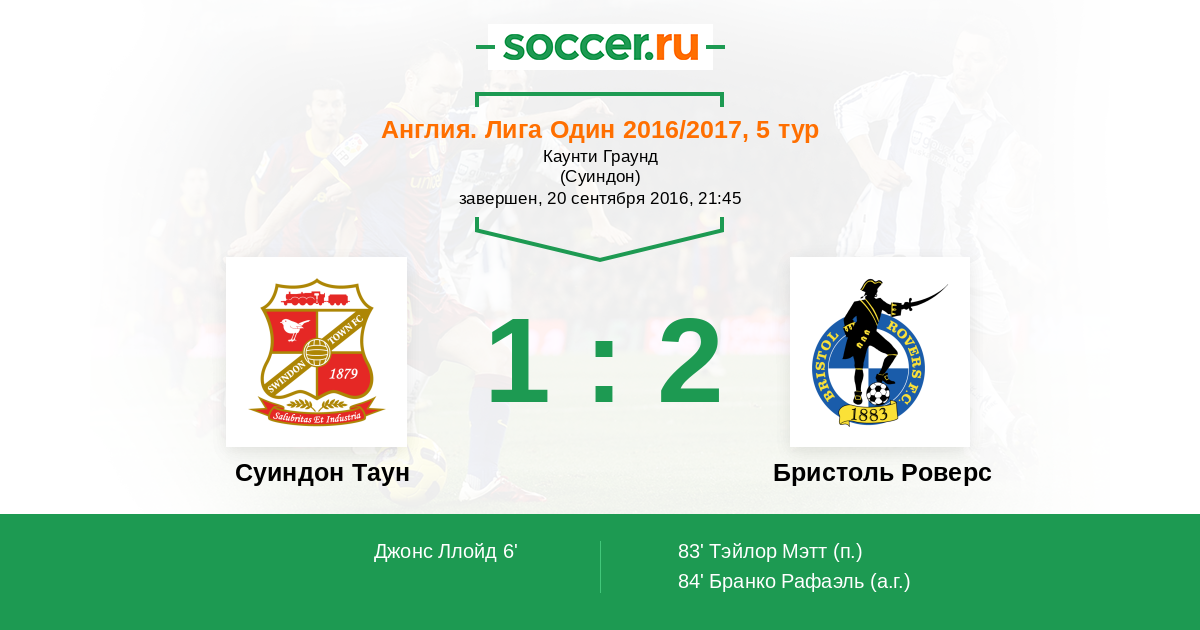 Протокол матча Суиндон Таун против Бристоль Роверс