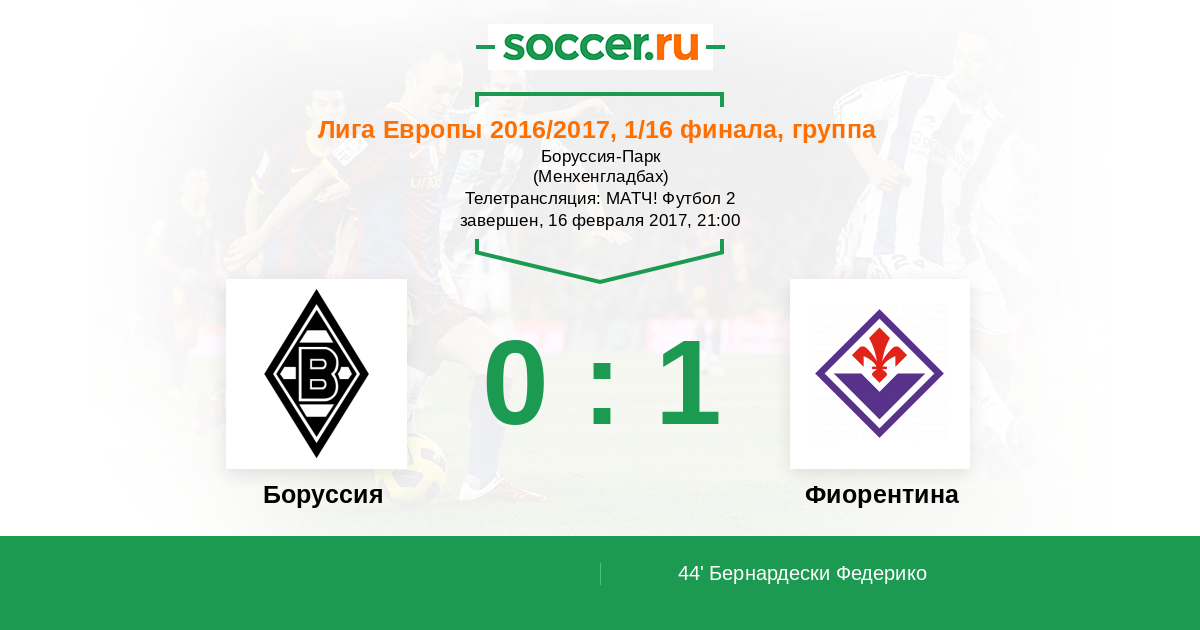 Протокол матча Боруссия против Фиорентина