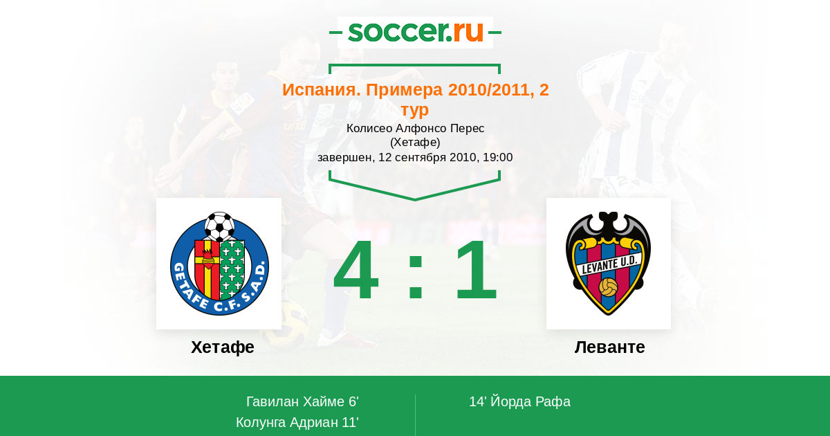 Протокол матча Хетафе против Леванте