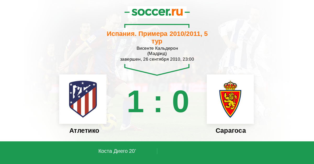 Протокол матча Атлетико против Сарагоса