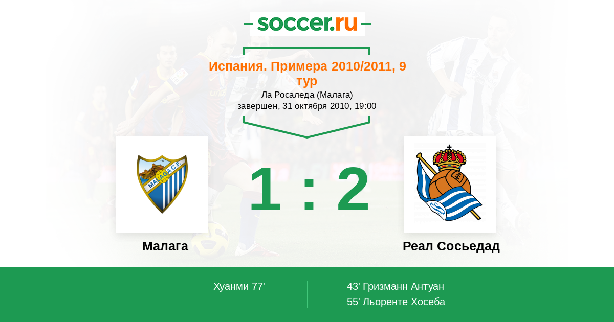 Протокол матча Малага против Реал Сосьедад