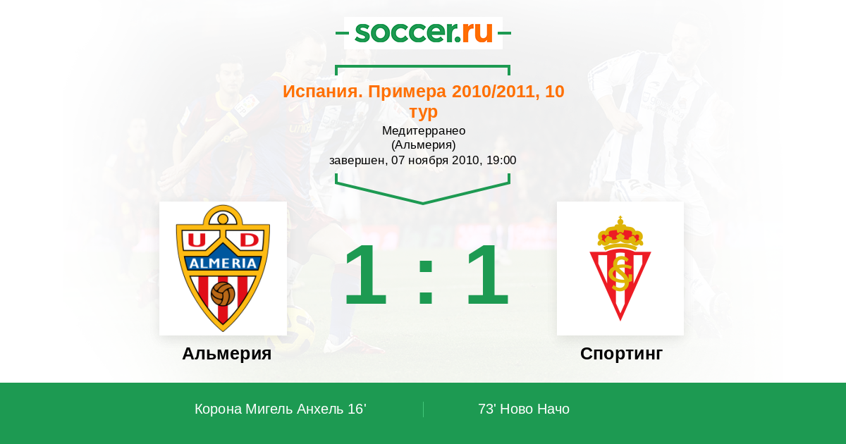 16' (1:0) Корона Мигель Анхель (15) (Пьятти Пабло (11))