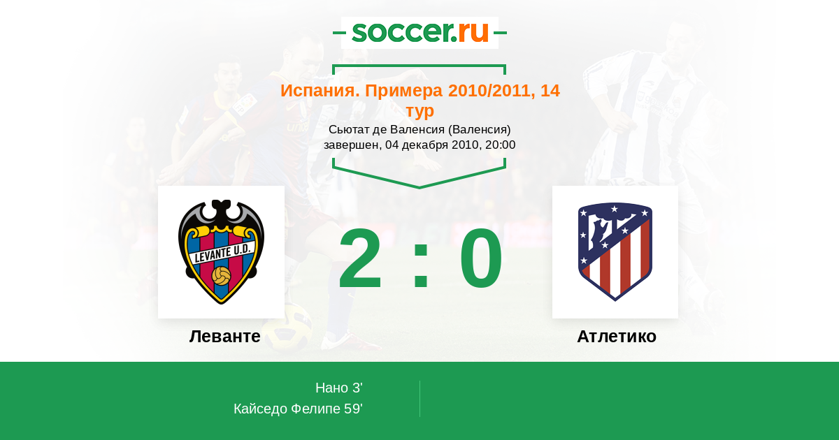 Протокол матча Леванте против Атлетико