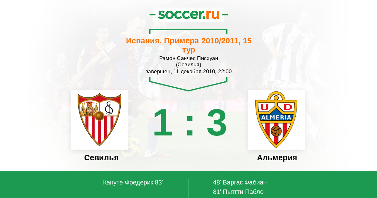 Протокол матча Севилья против Альмерия