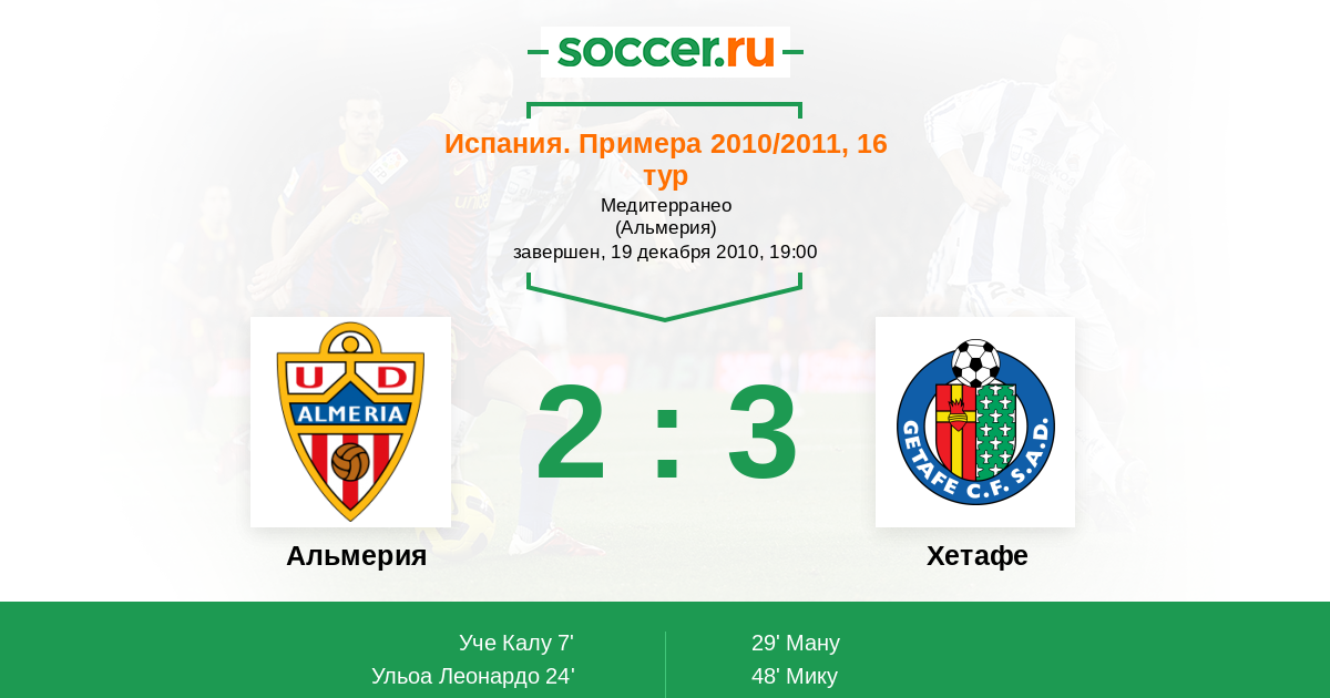 Протокол матча Альмерия против Хетафе