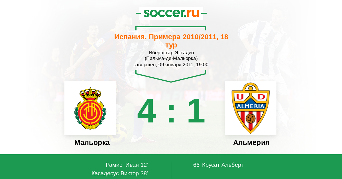 Протокол матча Мальорка против Альмерия