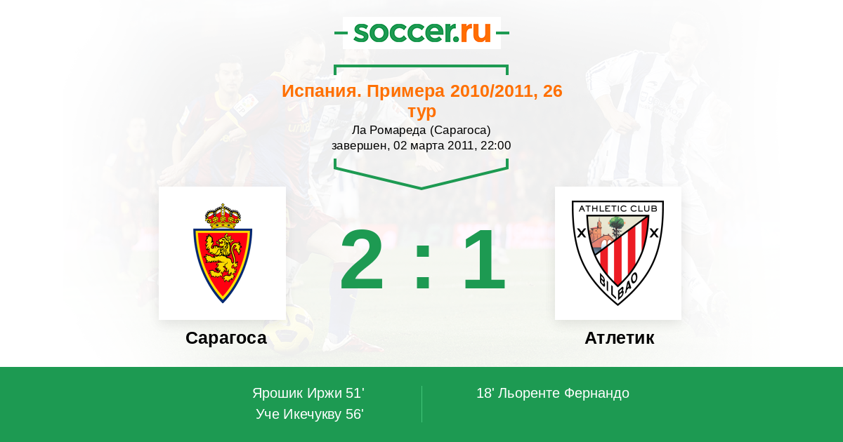 Протокол матча Сарагоса против Атлетик