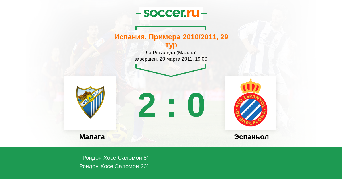 Протокол матча Малага против Эспаньол