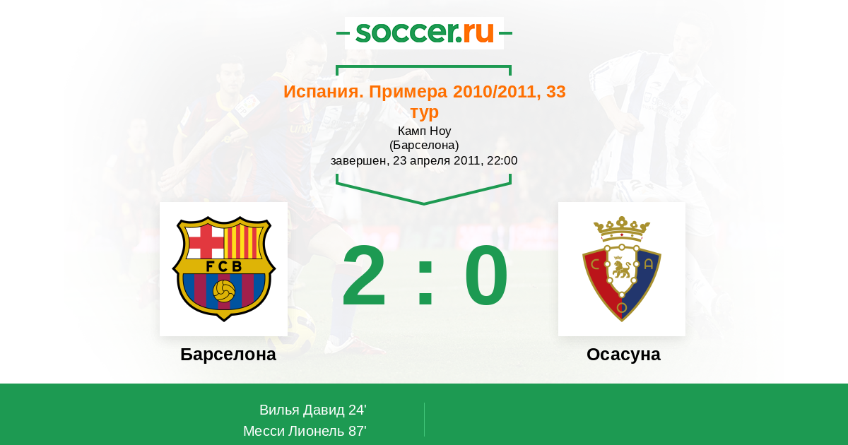 87' (2:0) Месси Лионель (10) (Алвес Даниэль (2))