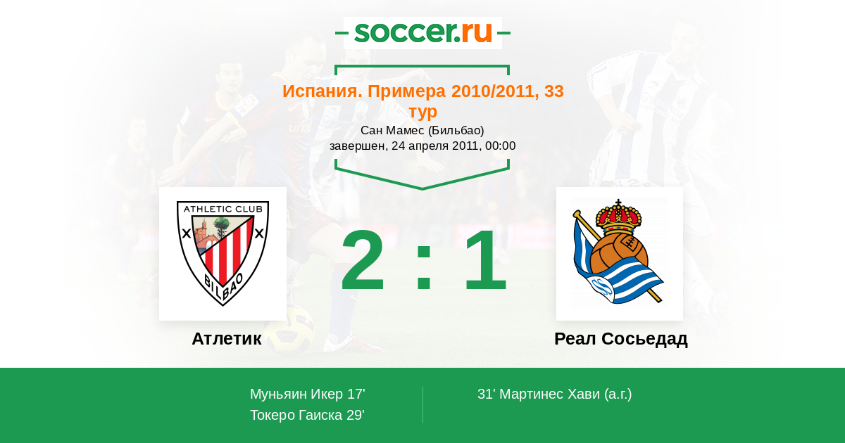 31' (2:1) Автогол Мартинес Хави (24)