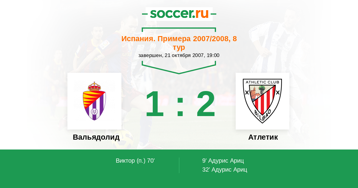 Протокол матча Вальядолид против Атлетик