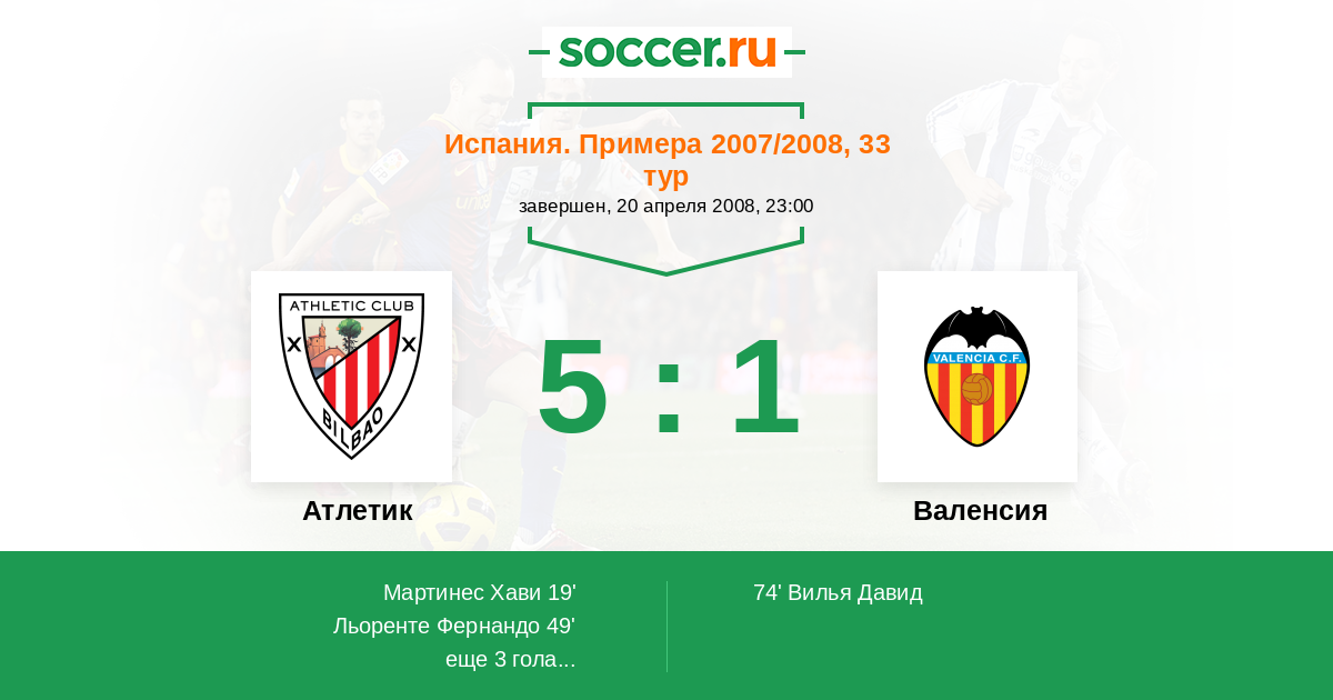 Протокол матча Атлетик против Валенсия