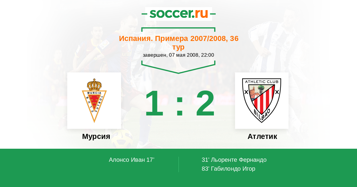 Протокол матча Мурсия против Атлетик