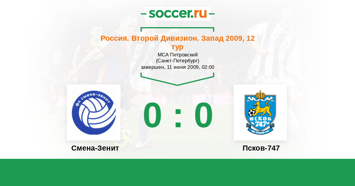 Россия. Вторая лига. Группа 2 23.09.2009 Псков-747 Логотип футбольный клуб Псков-747 2:1 Логотип футбольный клуб Смена-Зенит (Санкт-Петербург) Смена-Зенит