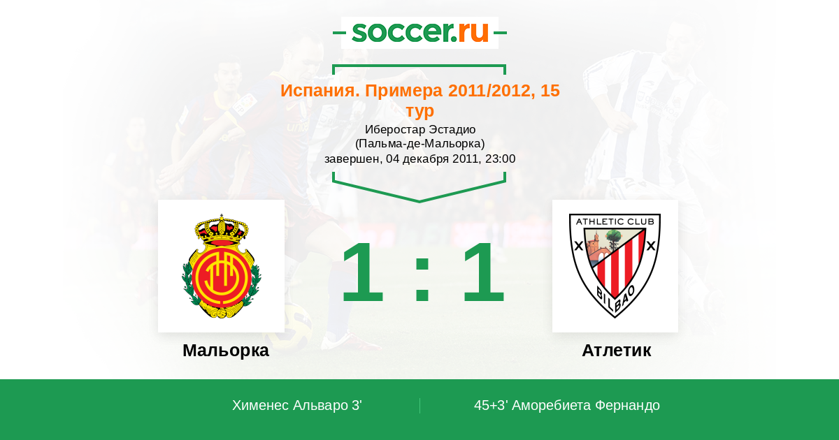 Протокол матча Мальорка против Атлетик