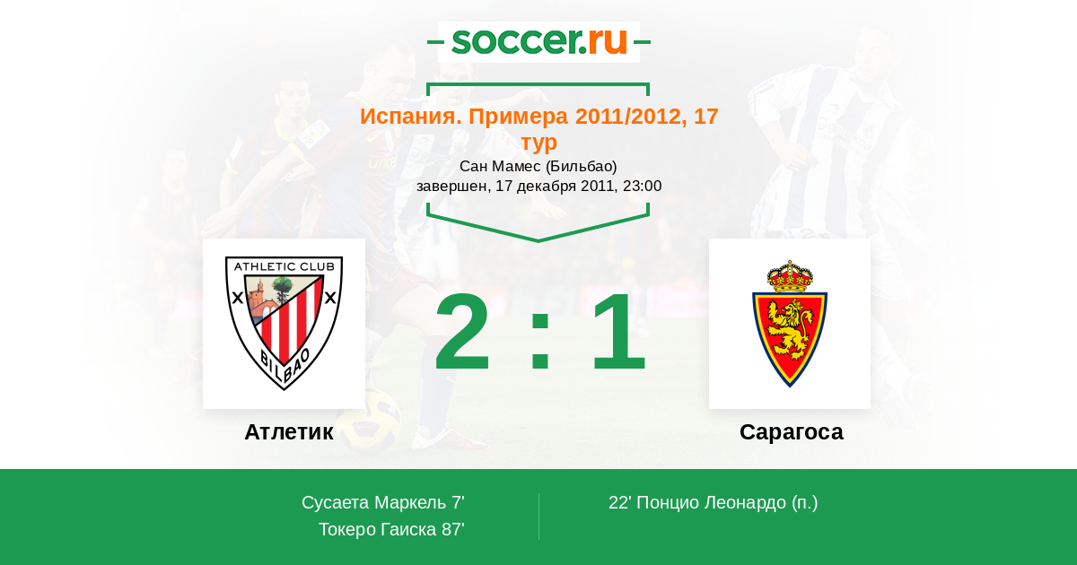 Протокол матча Атлетик против Сарагоса