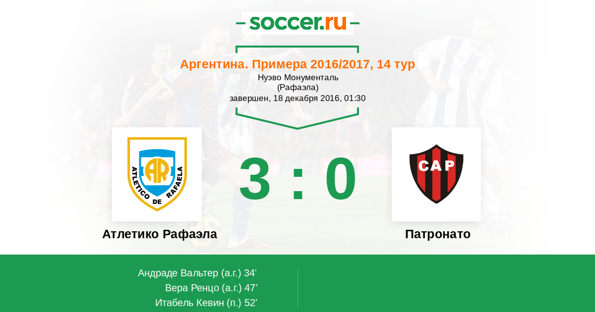 Протокол матча Атлетико Рафаэла против Патронато