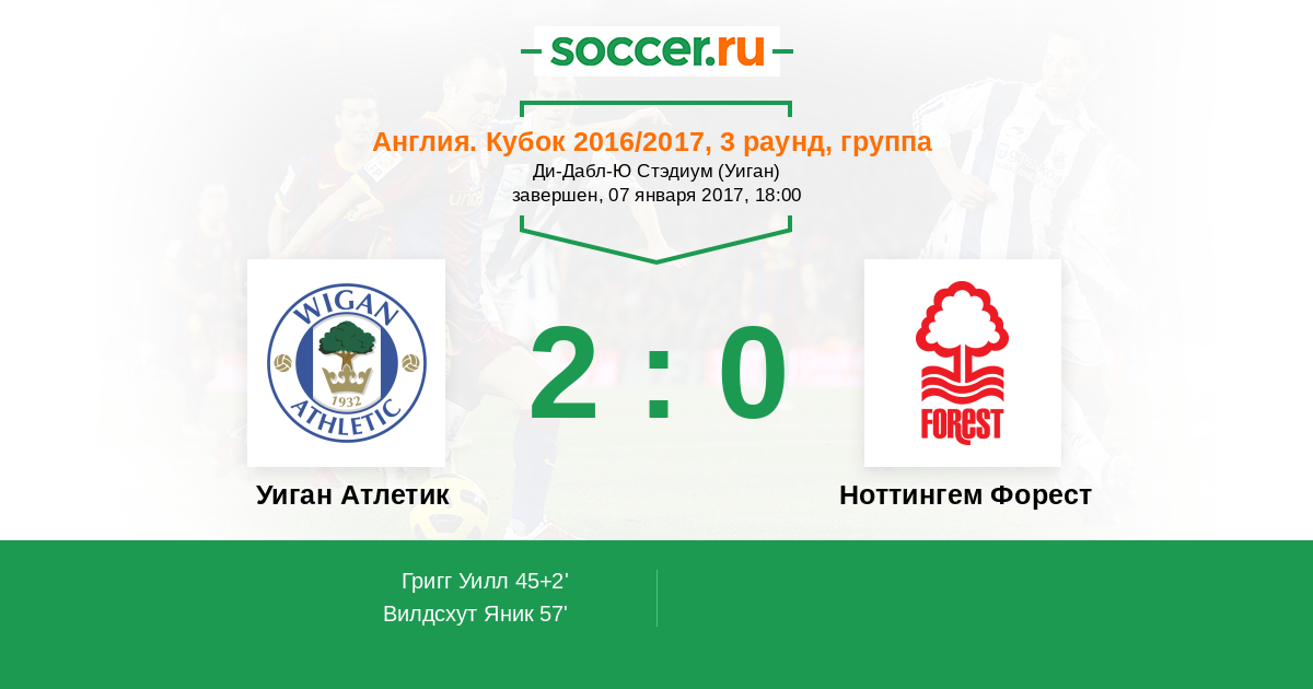 Протокол матча Уиган Атлетик против Ноттингем Форест