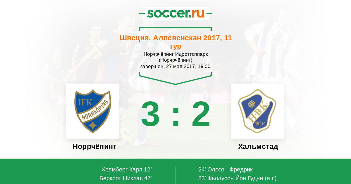 Протокол матча Норрчёпинг против Хальмстад