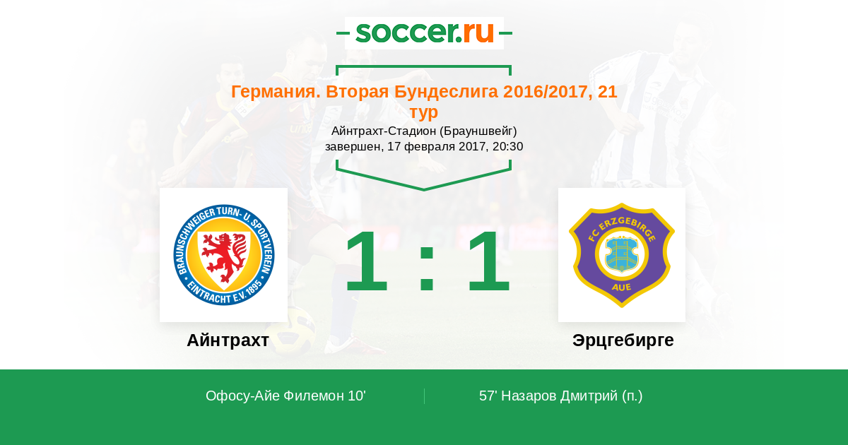 Протокол матча Айнтрахт против Эрцгебирге