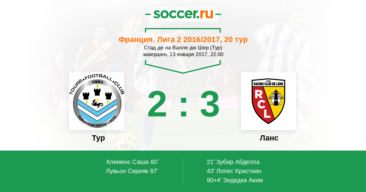 Протокол матча Тур против Ланс