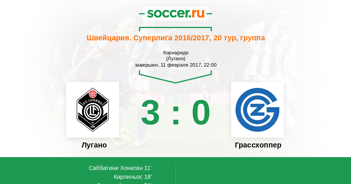 Протокол матча Лугано против Грассхоппер
