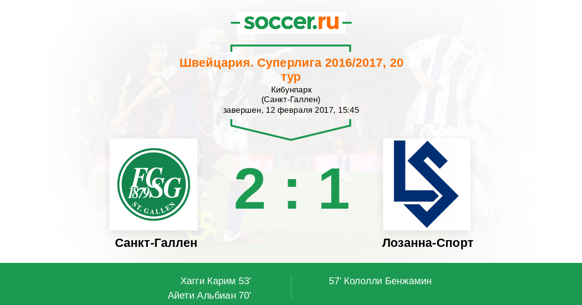 Протокол матча Санкт-Галлен против Лозанна-Спорт