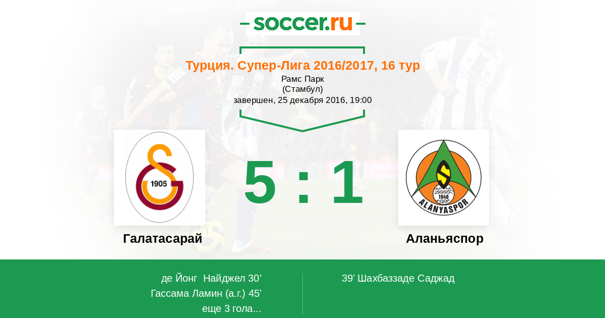 Протокол матча Галатасарай против Аланьяспор