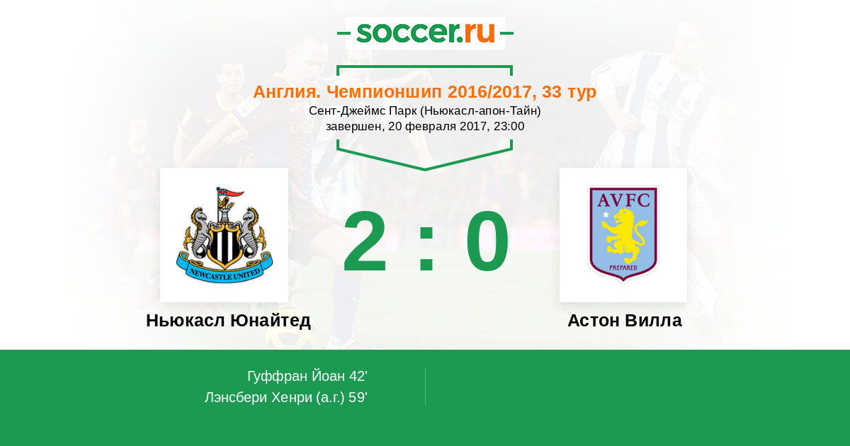 Протокол матча Ньюкасл Юнайтед против Астон Вилла