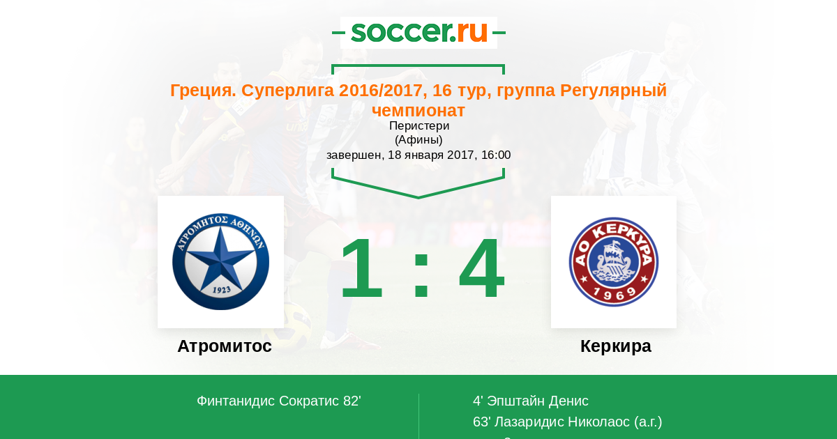 63' (0:2) Автогол Лазаридис Николаос (24)