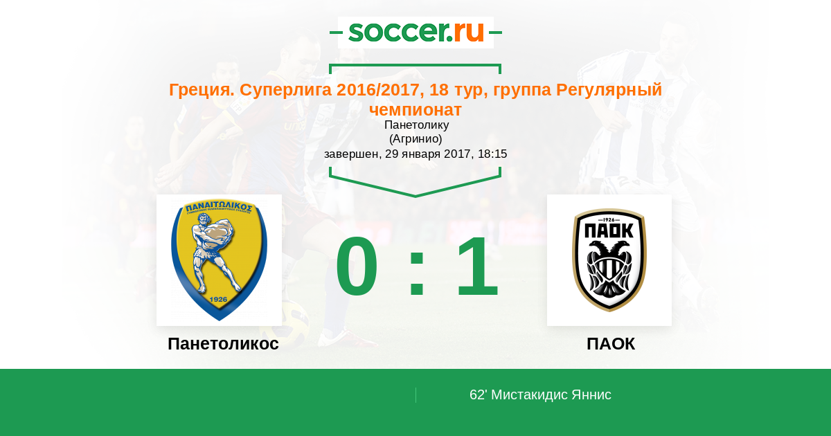 Протокол матча Панетоликос против ПАОК