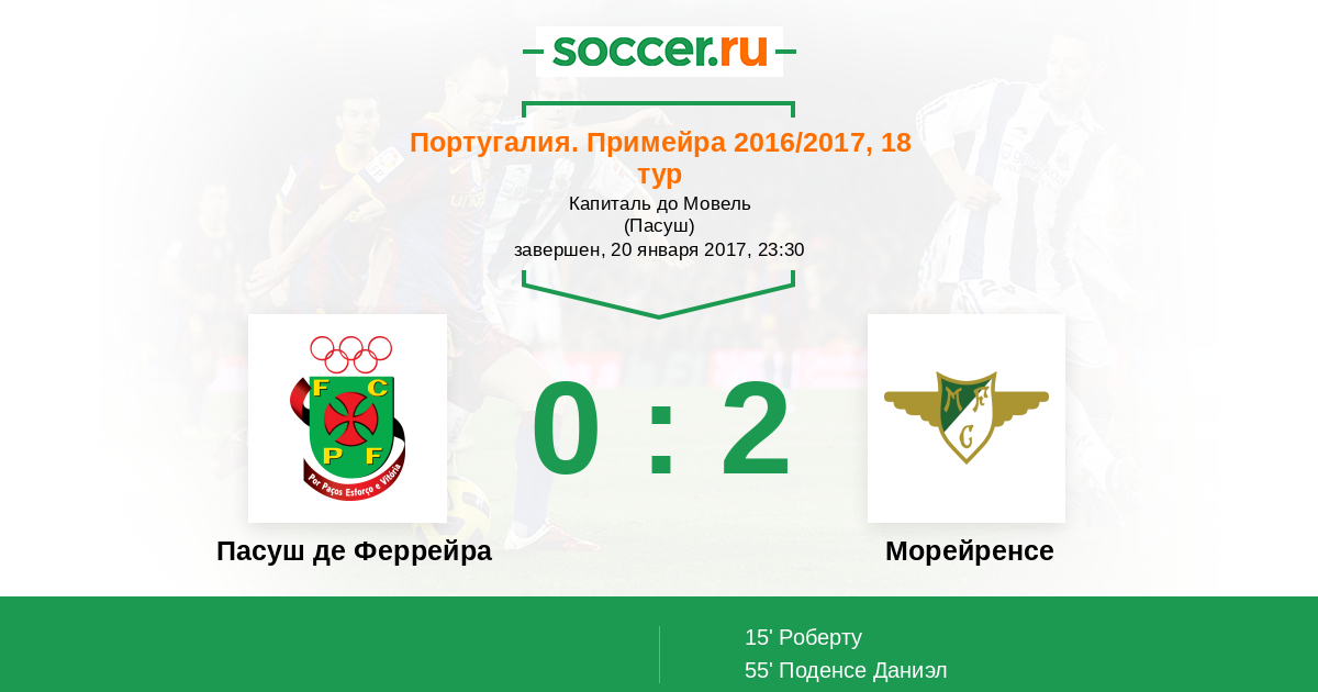 Протокол матча Пасуш де Феррейра против Морейренcе