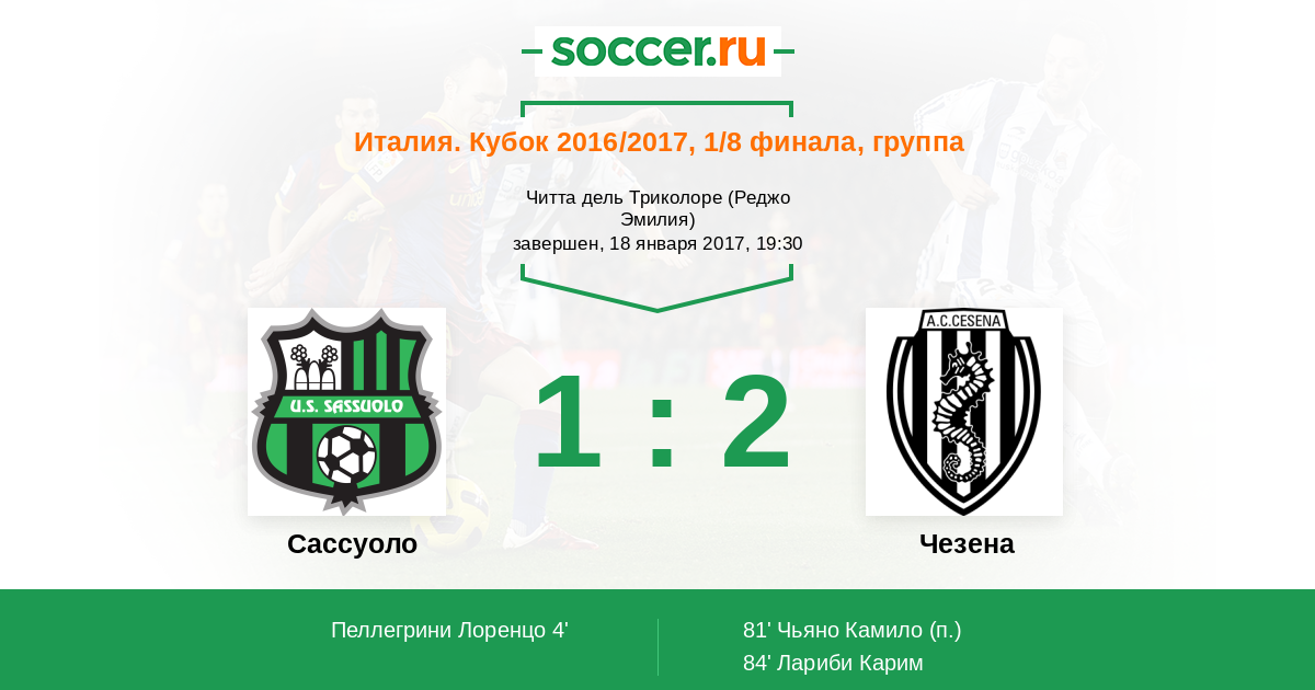 Протокол матча Сассуоло против Чезена