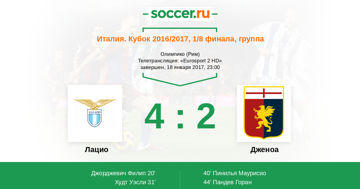Протокол матча Лацио против Дженоа