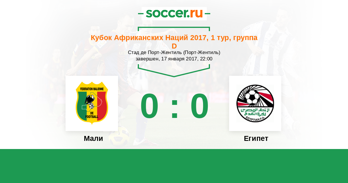 Протокол матча Мали против Египет
