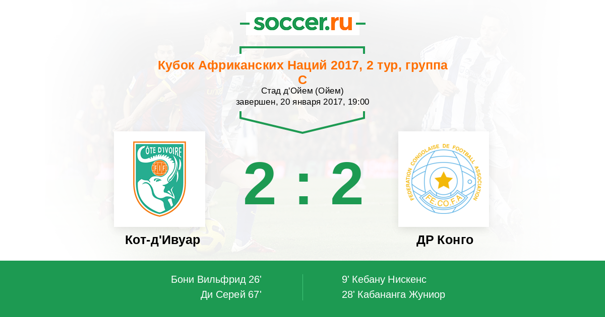 Протокол матча Кот-д'Ивуар против ДР Конго