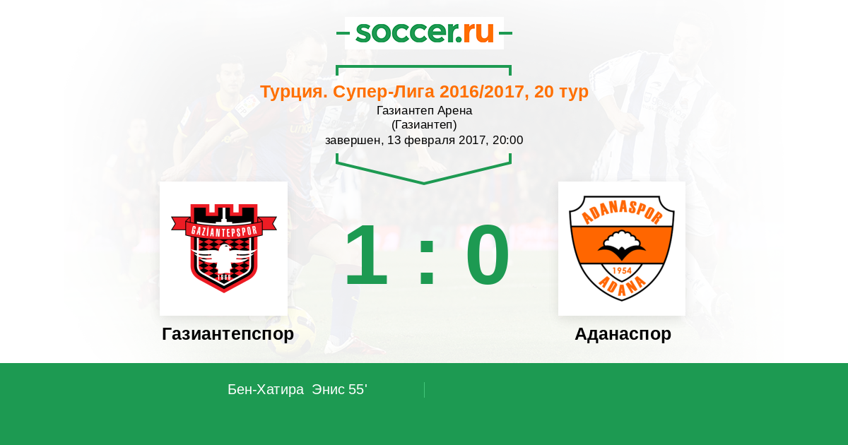 Протокол матча Газиантепспор против Аданаспор