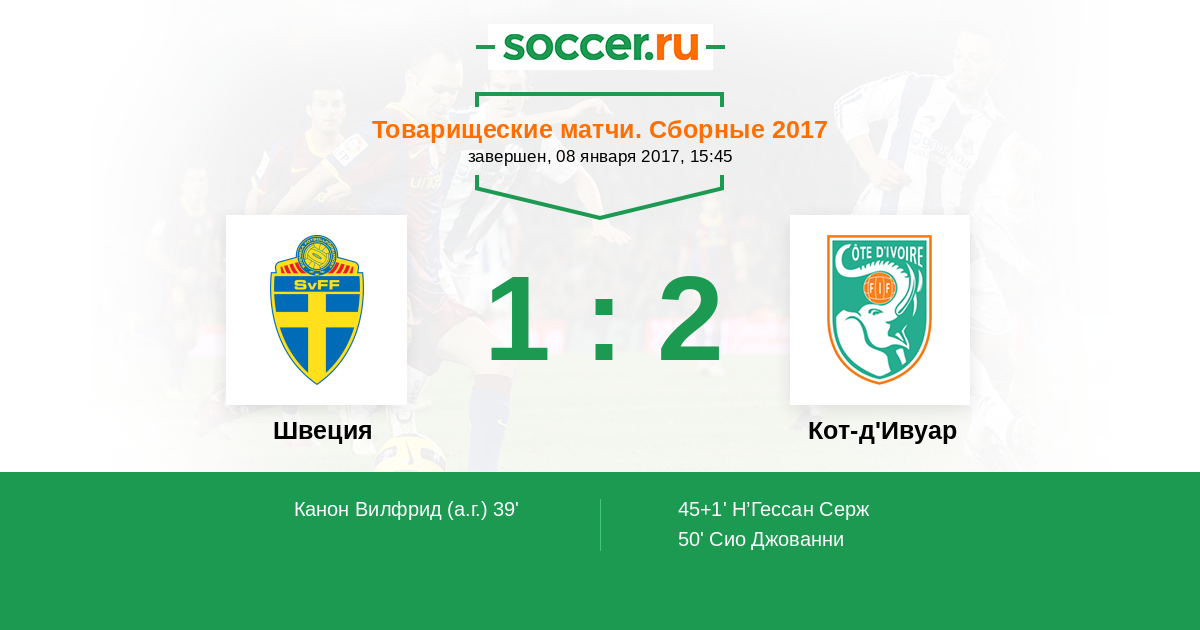 Протокол матча Швеция против Кот-д'Ивуар