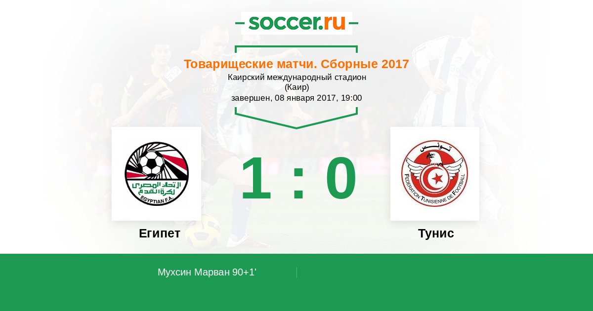 Протокол матча Египет против Тунис