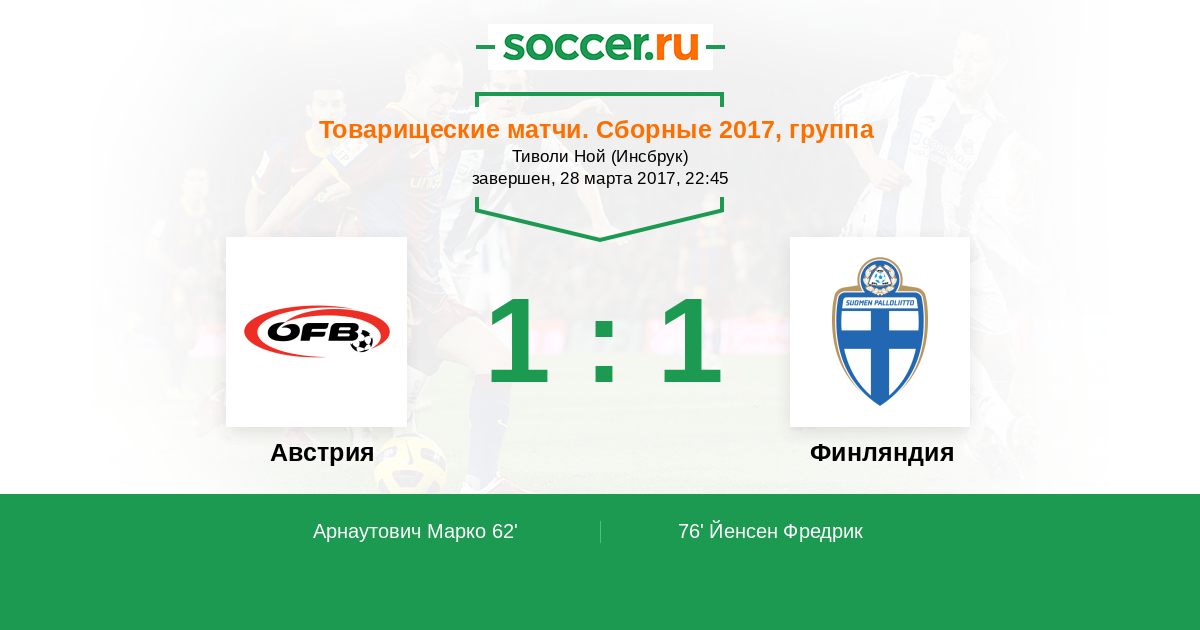 Протокол матча Австрия против Финляндия
