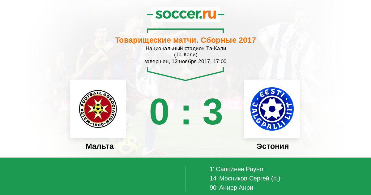 Протокол матча Мальта против Эстония