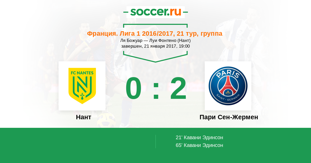 Протокол матча Нант против Пари Сен-Жермен