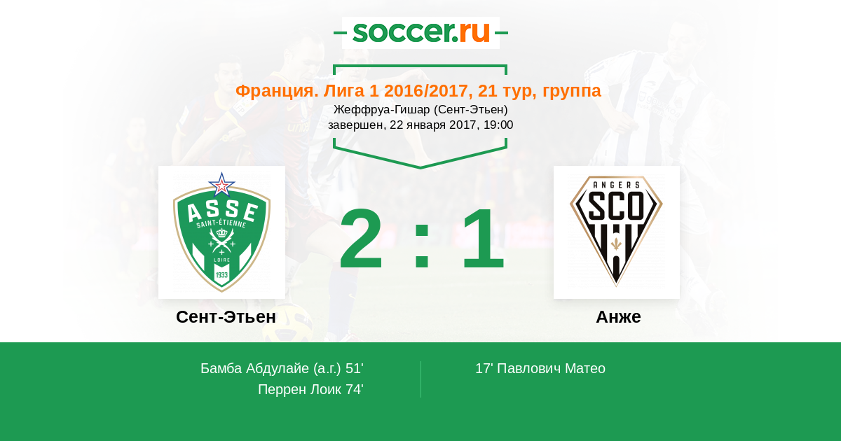 Протокол матча Сент-Этьен против Анже