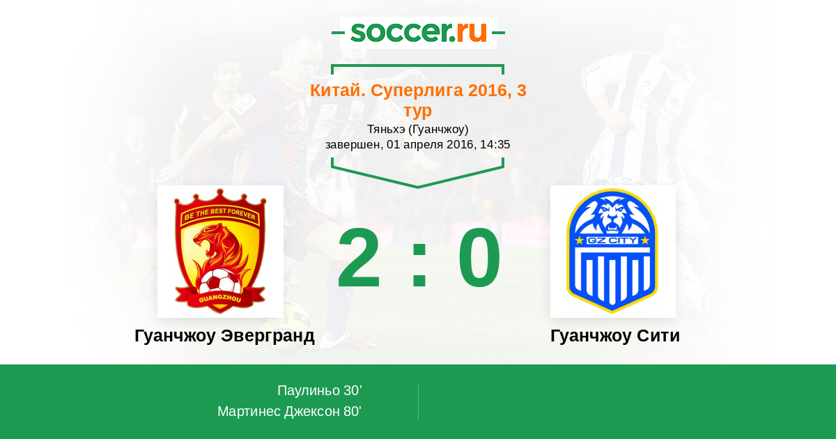Протокол матча Гуанчжоу Эвергранд против Гуанчжоу Сити