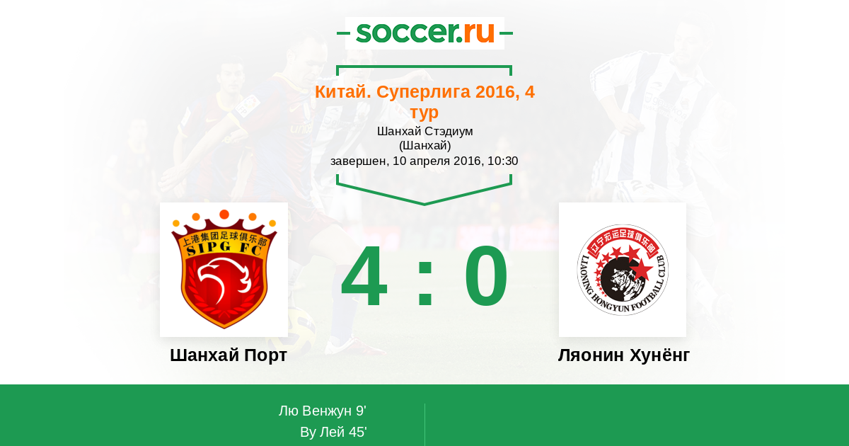 Протокол матча Шанхай Порт против Ляонин Хунёнг