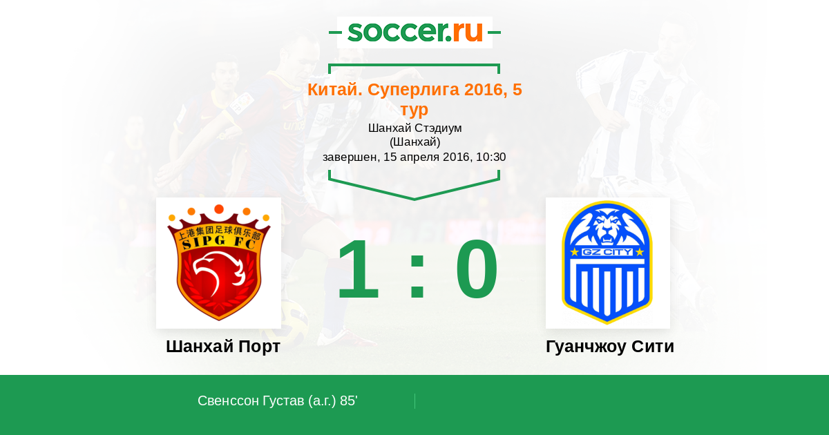 Протокол матча Шанхай Порт против Гуанчжоу Сити
