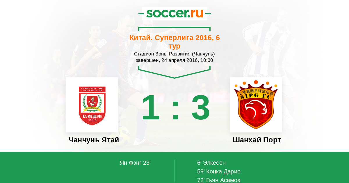 Протокол матча Чанчунь Ятай против Шанхай Порт